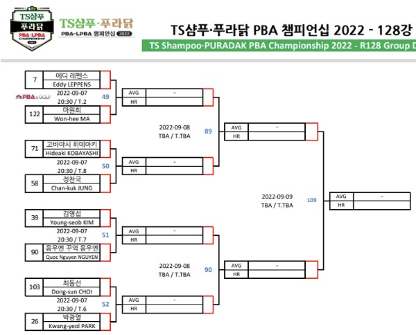 ● TS샴푸 푸라닭 PBA 챔피언십 2022 - 128강 대진표의 세부자료