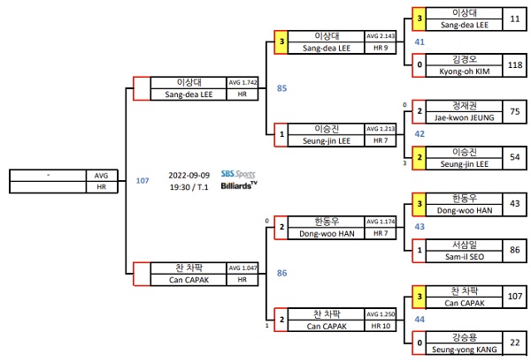 올시즌 2차 투어인 하나카드 PBA 챔피언십에서 사비드 사파타에게 아쉽게 패하며 준우승을 차지한 이상대 선수는 128강에서 김경오 당구선수를 3대1으로 꺾고, 64강에서는 이승진 당구선수를 3대1으로 이기며, 무난하게 32강 대진표에 이름을 올렸습니다. 이상대 선수의 에버리지는 1.742호 좋은 경기력을 보여주었습니다. 반면 튀르키예(구 터키) 출신 당구선수, 찬 차팍 당구선수는 128강에서 강승용 당구선수를 3대0으로 꺾고, 64강에서는 한동우 당구 선수와 2대2 동점상황에서 이어진 승부치기를 이기고 32강에 진출하였습니다.