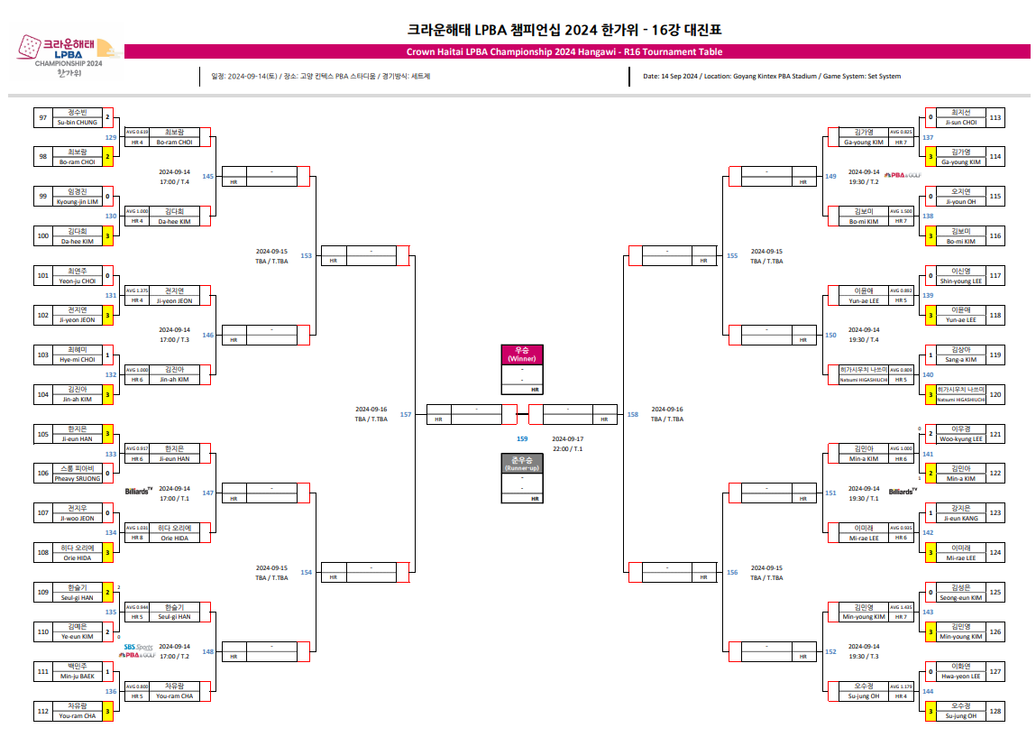 ■ 크라운해태 LPBA 챔피언십 2024 한가위 16강 대진표