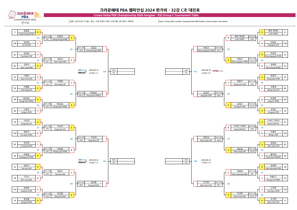 2. 크라운해태 PBA 챔피언십 2024 한가위 32강 대진표