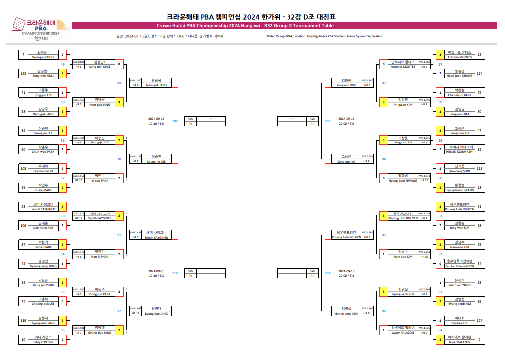 2. 크라운해태 PBA 챔피언십 2024 한가위 32강 대진표