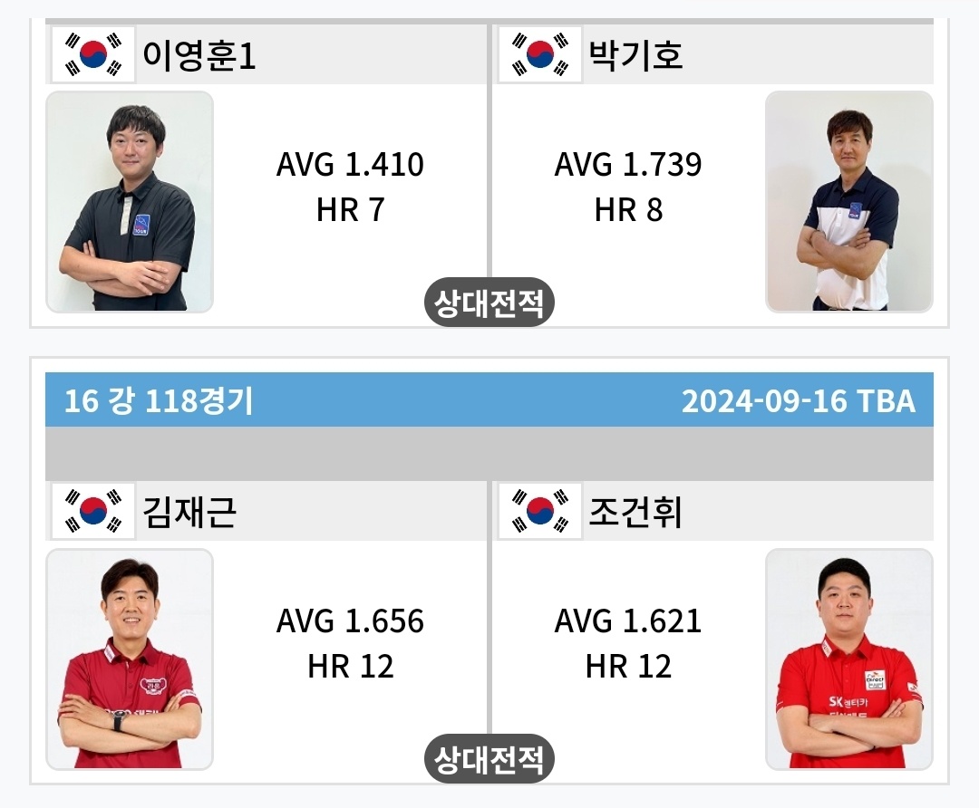 오늘은 프로당구 2024-25 시즌 크라운해태 PBA 챔피언십 2024 한가위 프로당구대회의 16강 대진표와 32강 경기결과를 정리하였습니다.