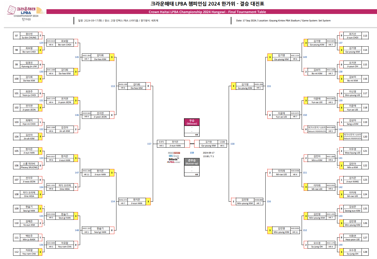 ■ 크라운해태 LPBA 챔피언십 2024 한가위 결승 대진표