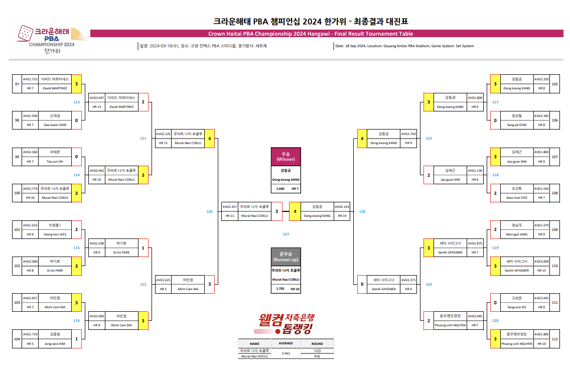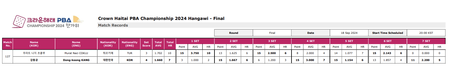 1. 크라운해태 PBA 챔피언십 2024 한가위 결승전 경기결과