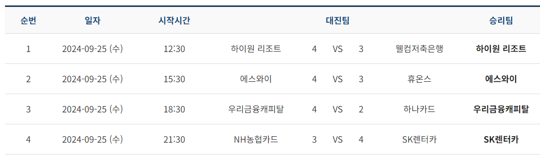 한편 2라운드 2일차인 26일에는 크라운해태와 휴온스의 첫 경기(12:30)를 시작으로 하이원리조트-하나카드(15:30) 에스와이-SK렌터카(18:30) 우리금융캐피탈-NH농협카드(21:30) 경기로 이어진다. 웰컴저축은행은 하루 쉬어간다.