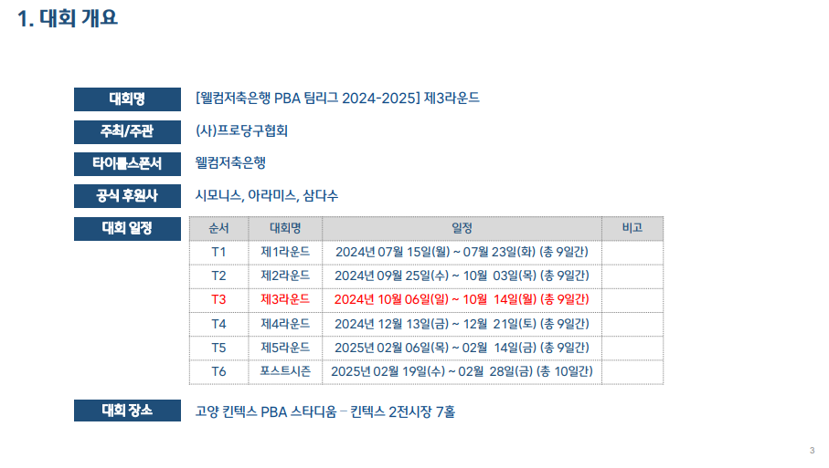 웰컴저축은행 PBA 팀리그 2024-2025 제3라운드 대회 소개