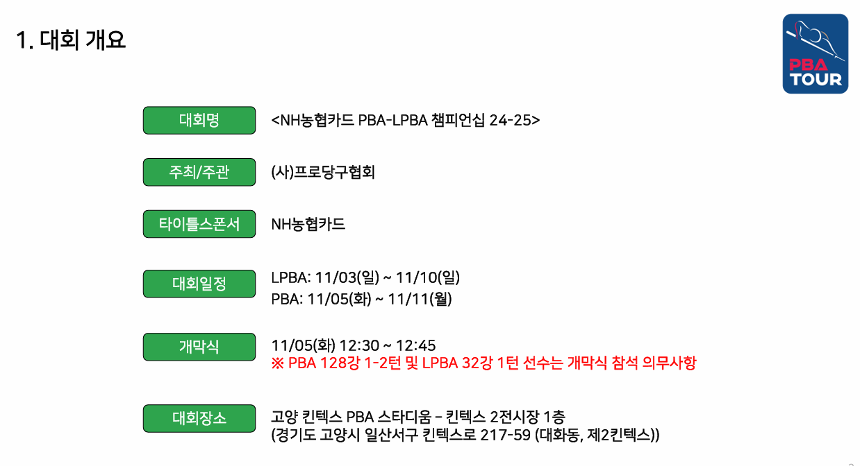 NH농협카드 PBA-LPBA 챔피언십 24-25 대회 요강