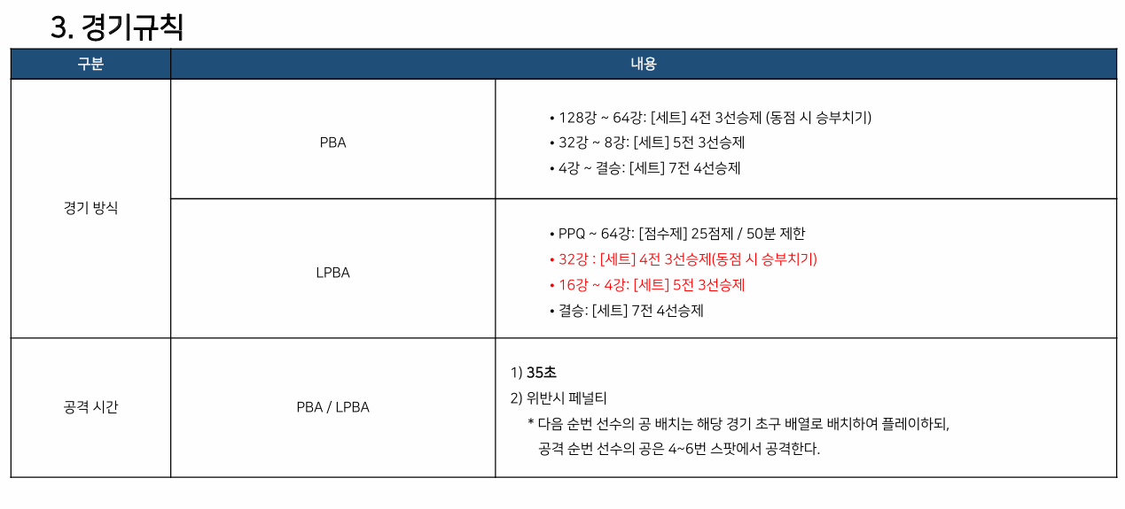 아래는 PBA 프로당구협회가 배포한 프로당구 대회요강 PDF 원본 자료이니 참고바랍니다.