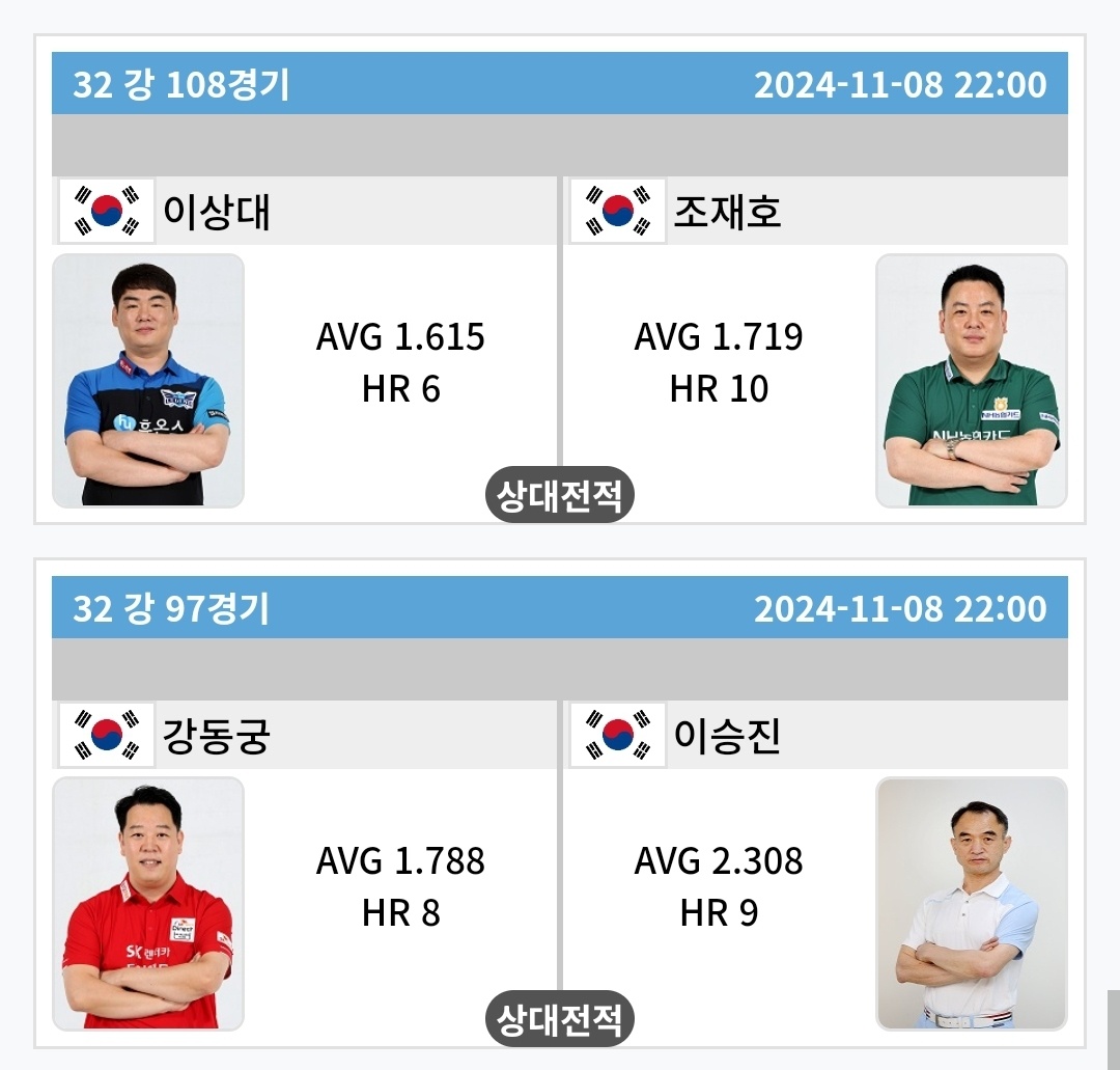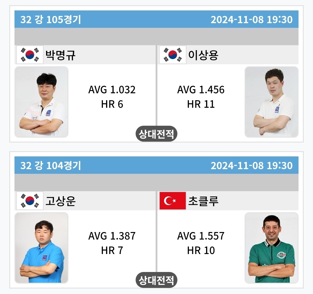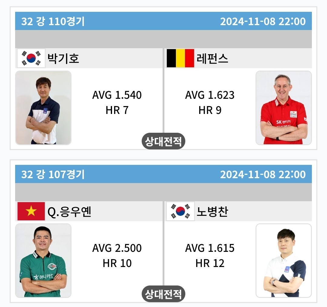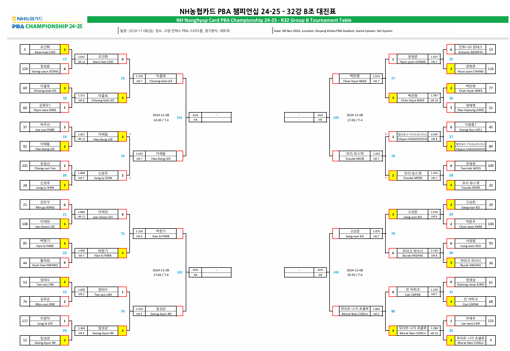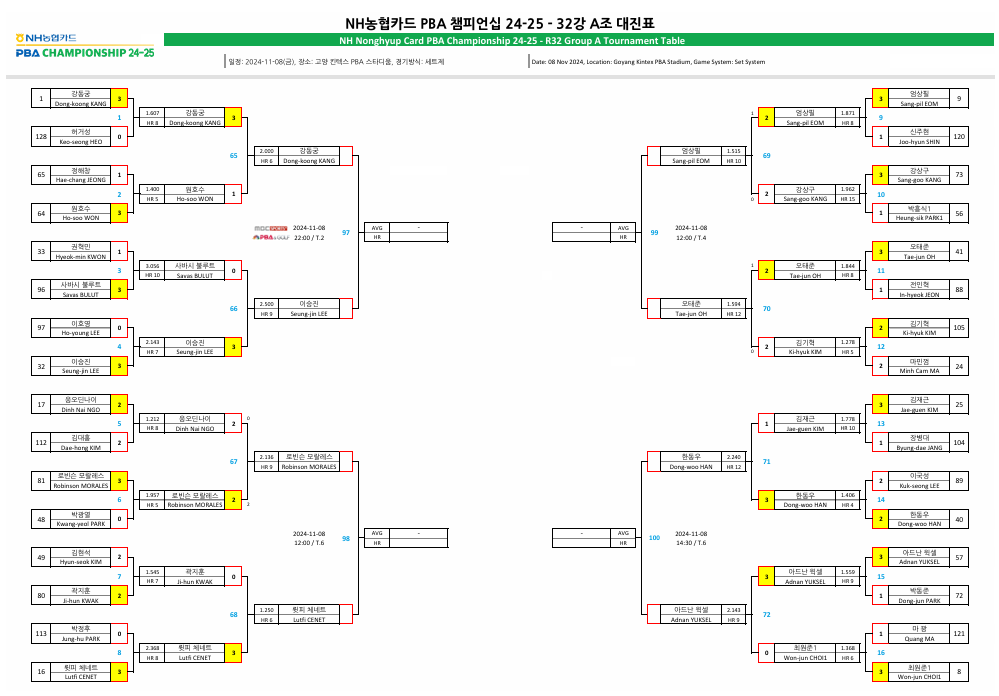 | NH농협카드 챔피언십 - PBA 64강 진출, LPBA 32강 진출 선수들 면면 (0) | 2024.11.07 |