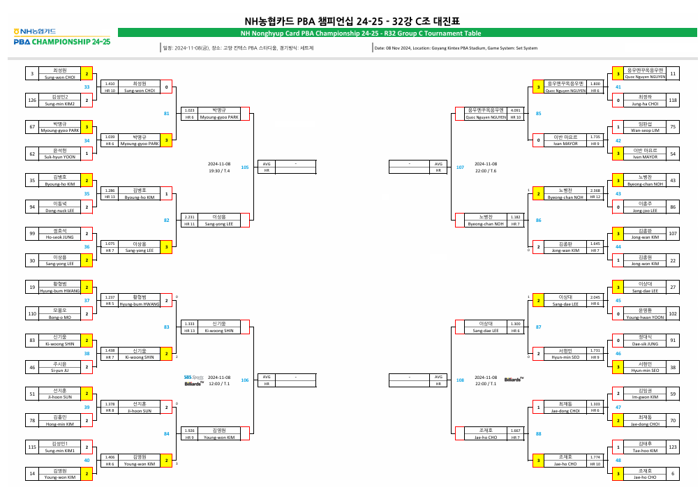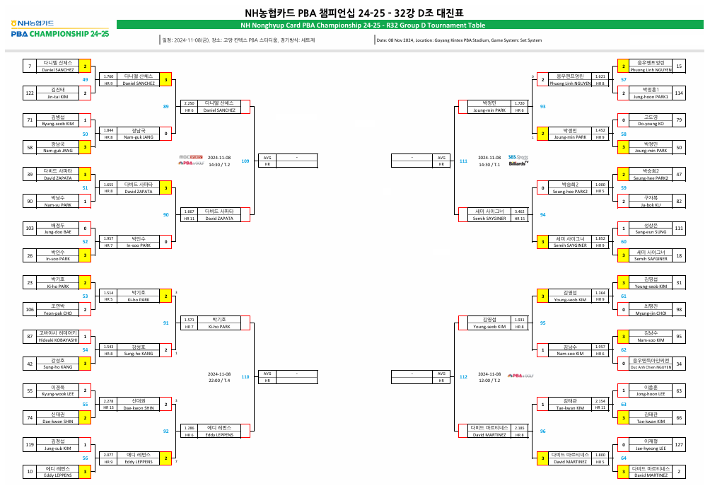 2. NH농협카드 PBA 챔피언십 32강 대진표