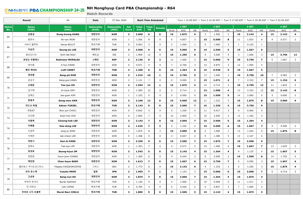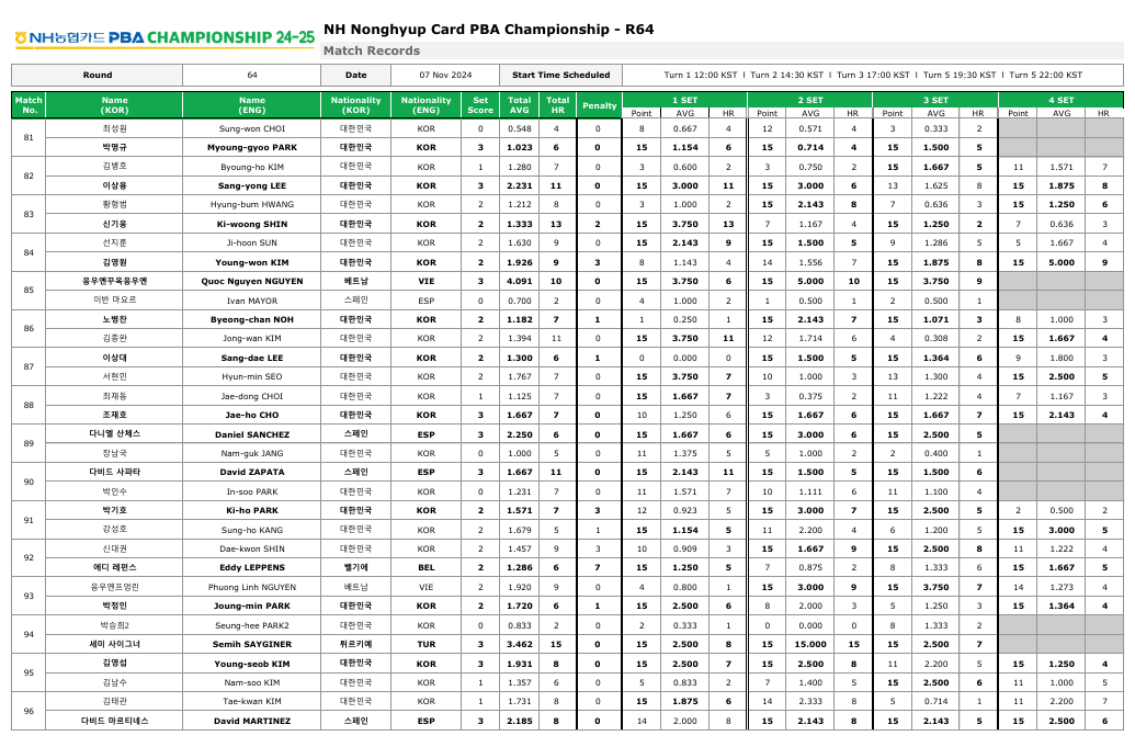 1. NH농협카드 PBA 챔피언십 64강 경기결과