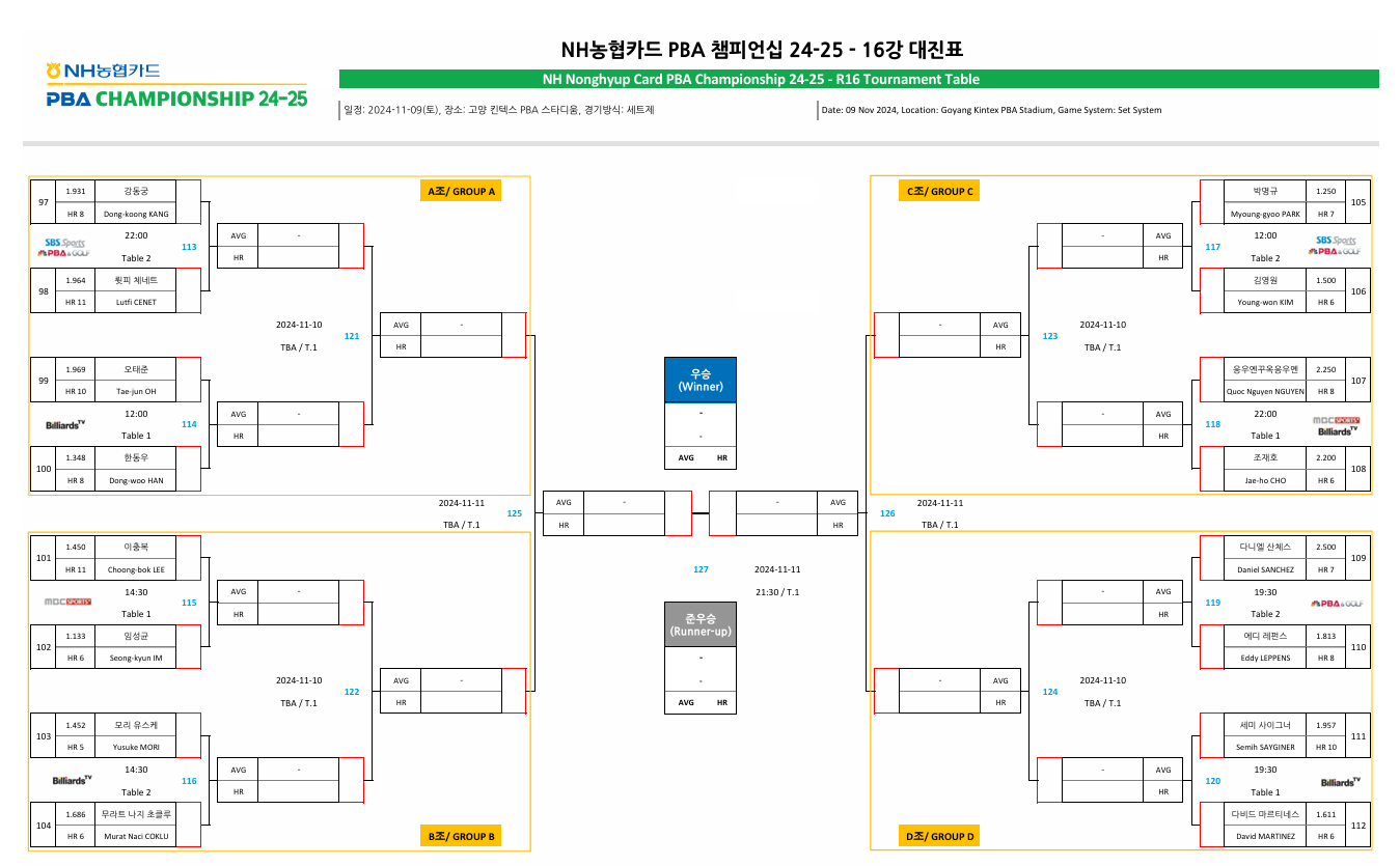 2. NH농협카드 PBA 챔피언십 16강 대진표