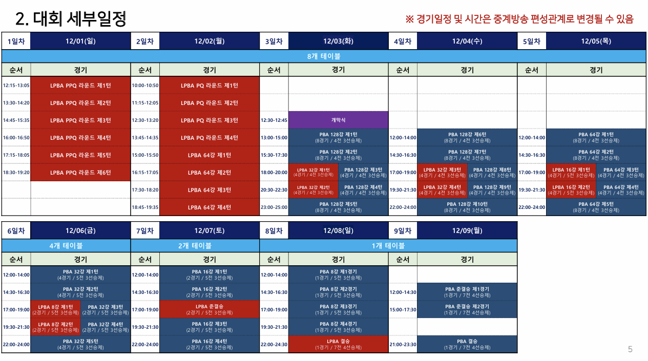 • LPBA: 12월 1일(일) ~ 12월 8일(일)