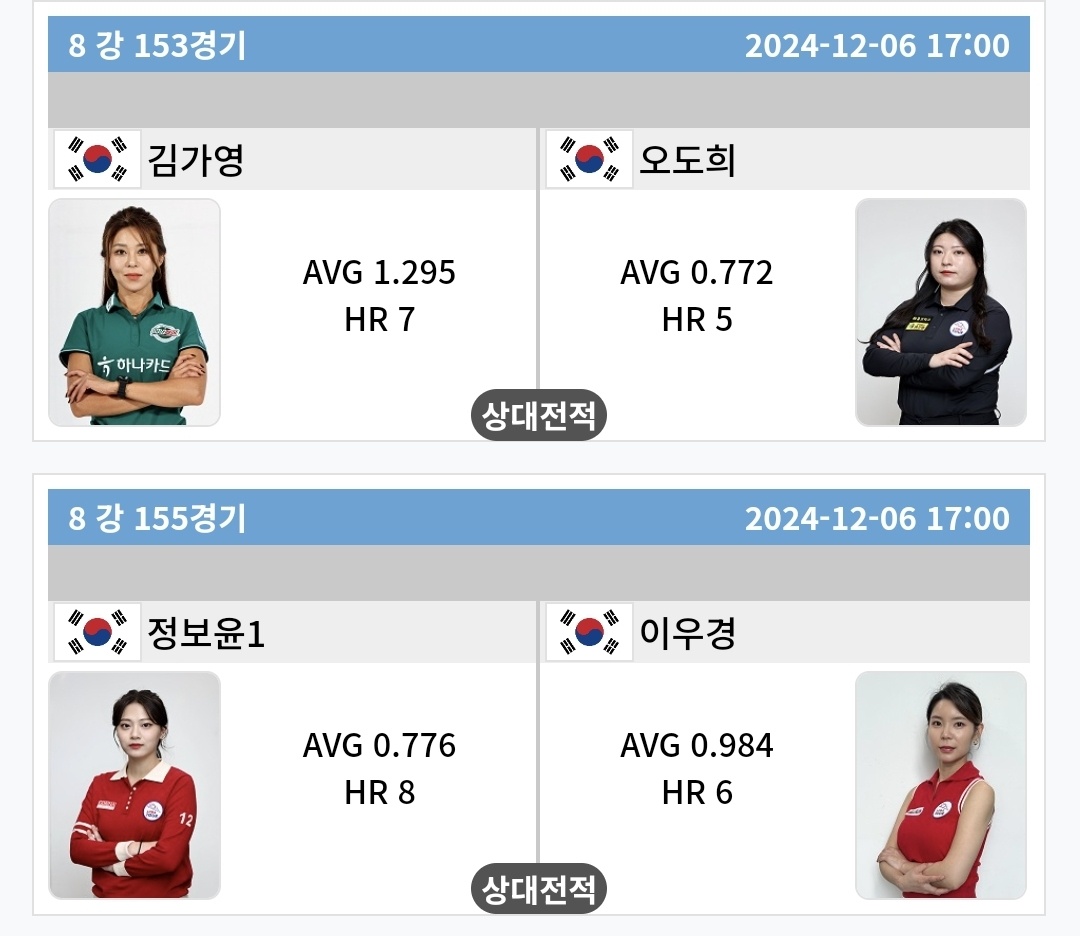 하이원리조트 LPBA 챔피언십 8강 대진표 to 16강 경기결과(프로당구 2024-25)