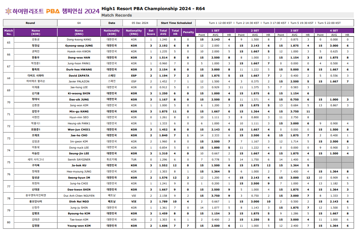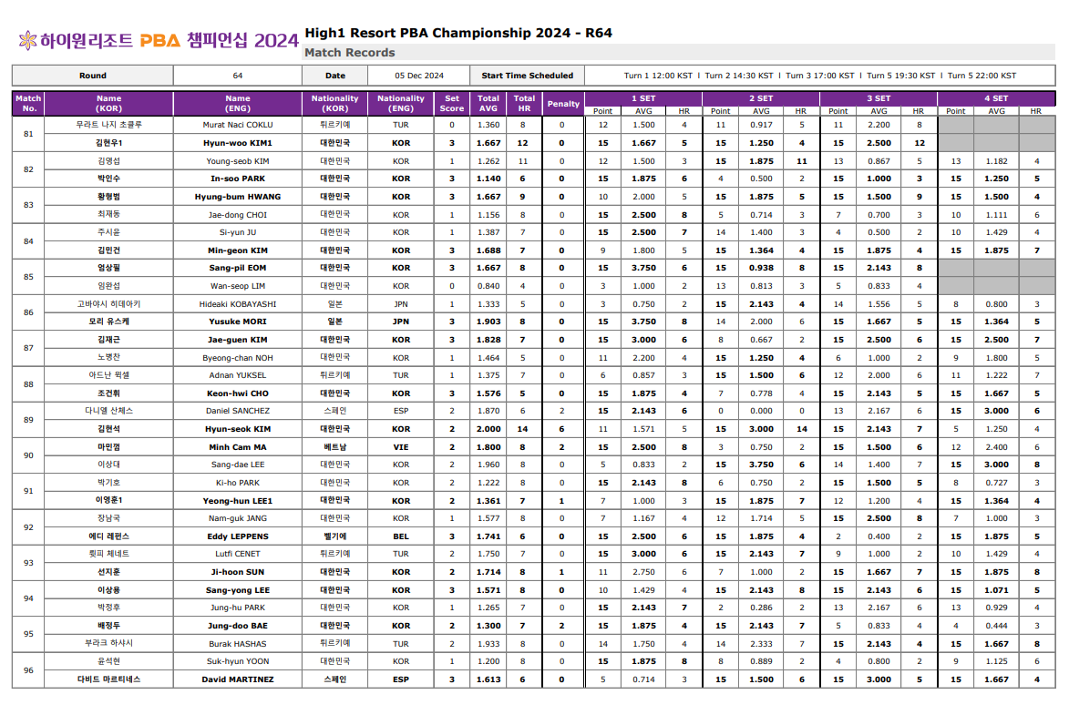 1. 하이원리조트 PBA 챔피언십 64강 경기결과