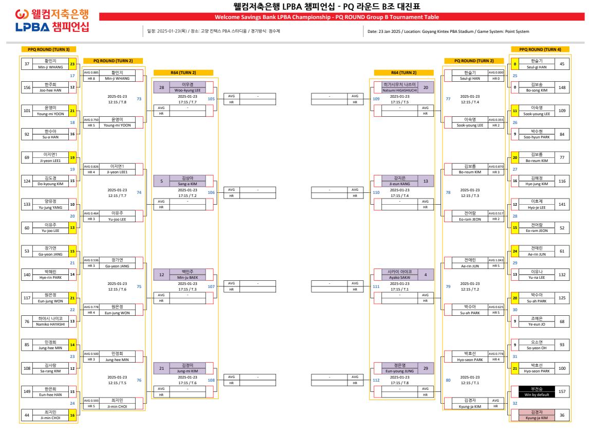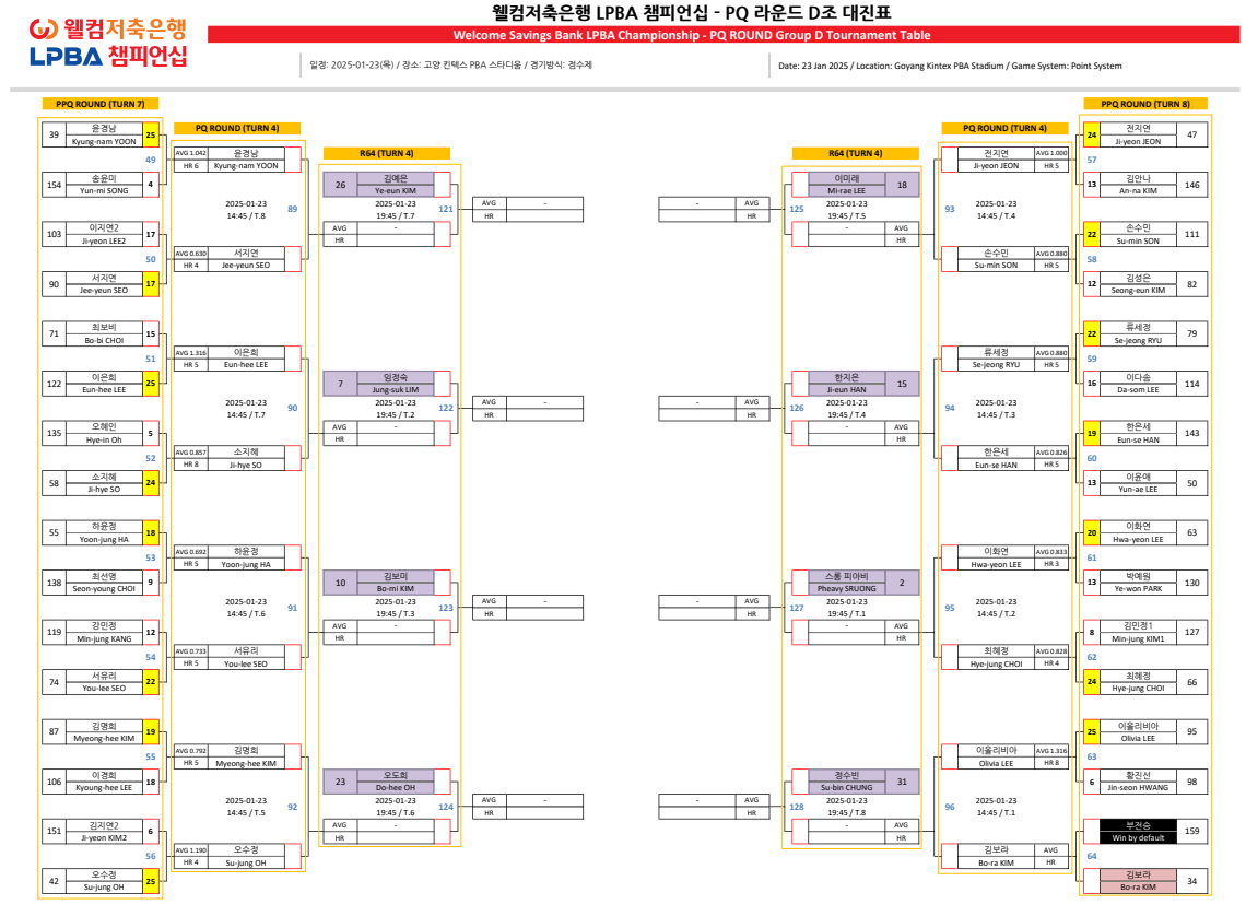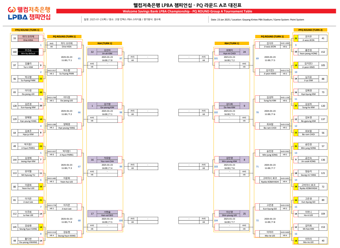 웰컴저축은행 LPBA 챔피언십 PQ 라운드 대진표 (24-25시즌)
