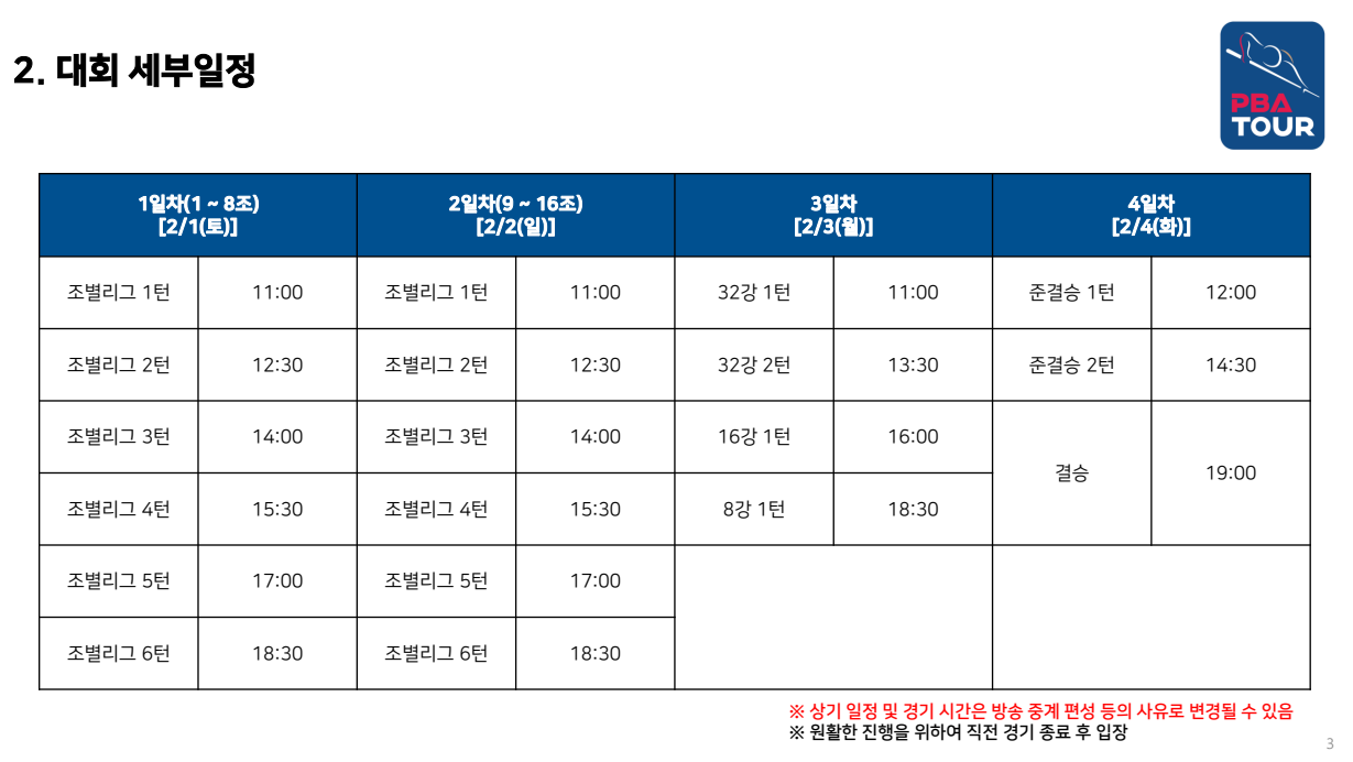 - 대회 주최: (사)프로당구협회 PBA