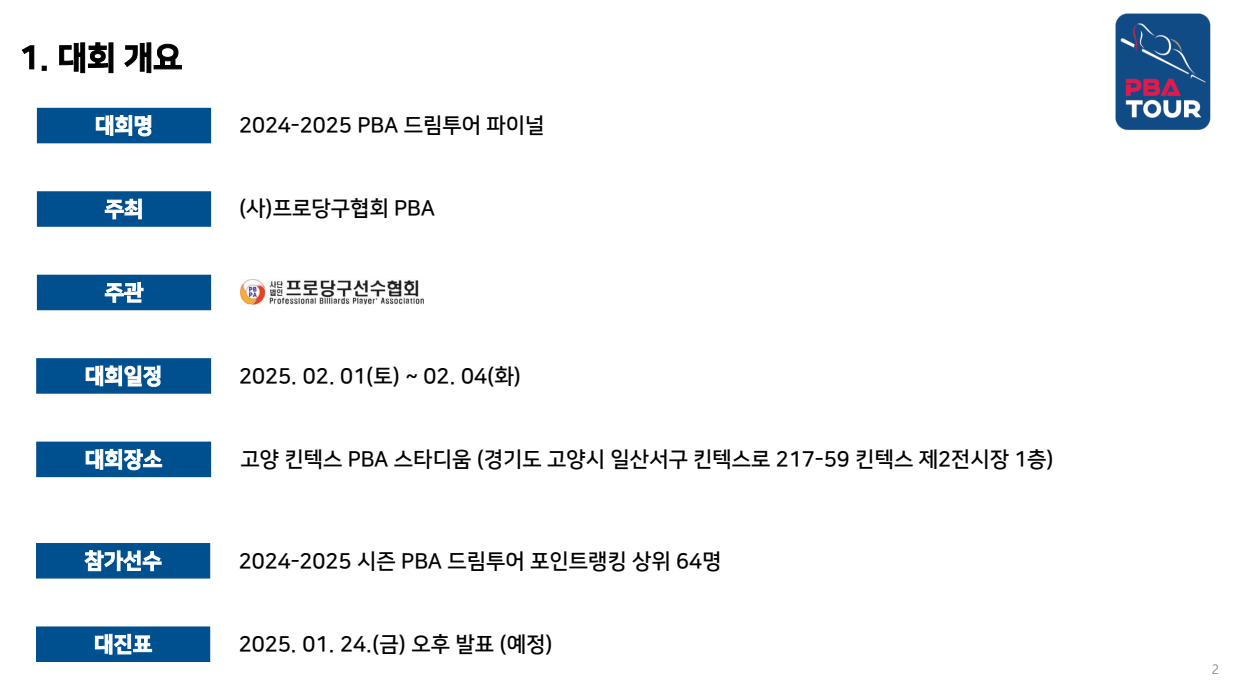 - 대회 주최: (사)프로당구협회 PBA