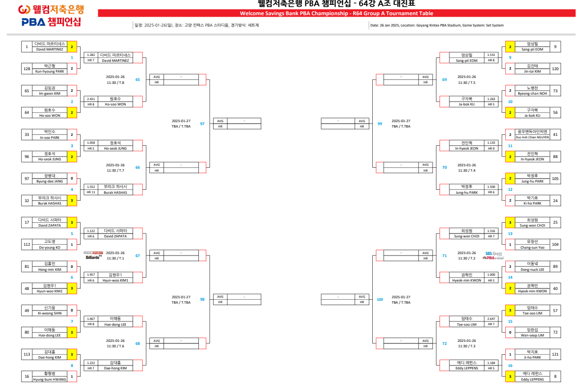 2. 웰컴저축은행 PBA 챔피언십 64강 대진표