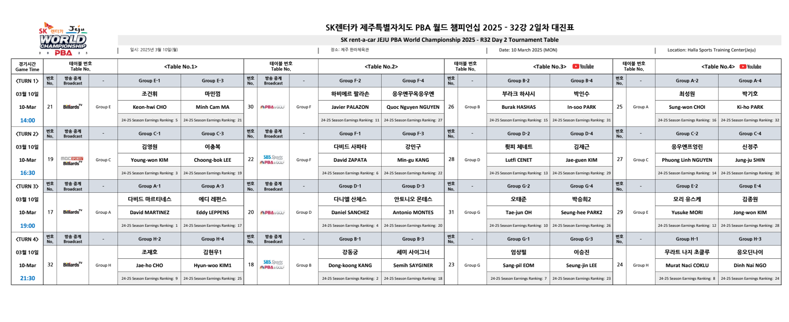 🏆 SK렌터카 제주특별자치도 PBA 월드 챔피언십 2025 - 32강 대진표 총정리