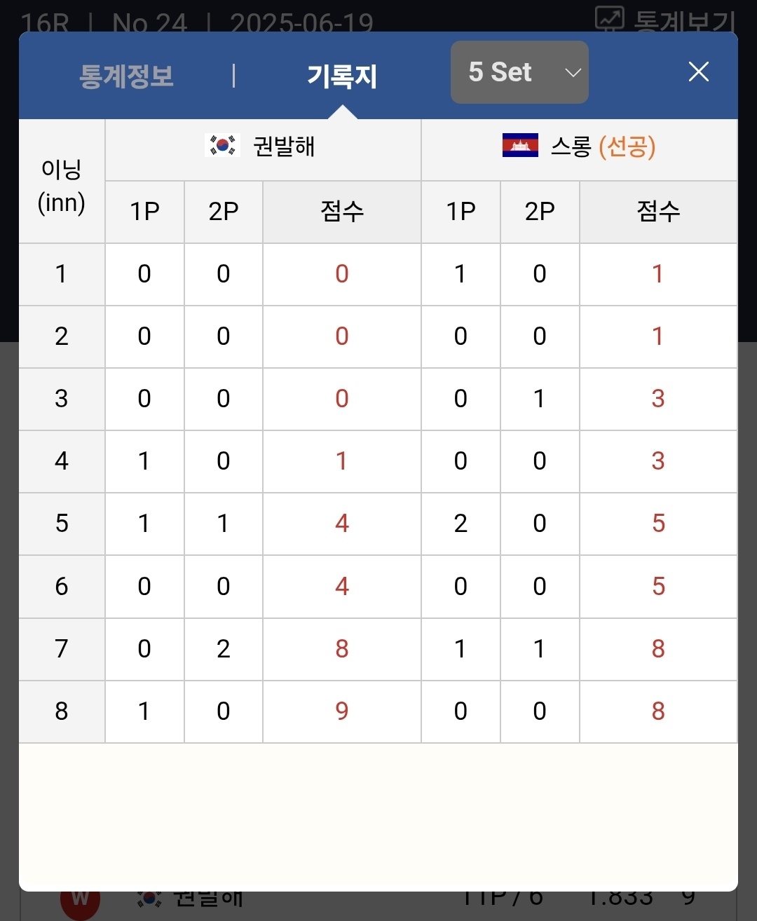 마지막 5세트는 당연히 스롱피아비 선수가 이기는 줄 알았습니다. 먼저 8:4로 앞서나가면서 1득점만 더 추가하면 8강 진출을 확정짓는 매치 포인트에 먼저 도착한 스롱 피아비가 마무리를 못지었습니다.