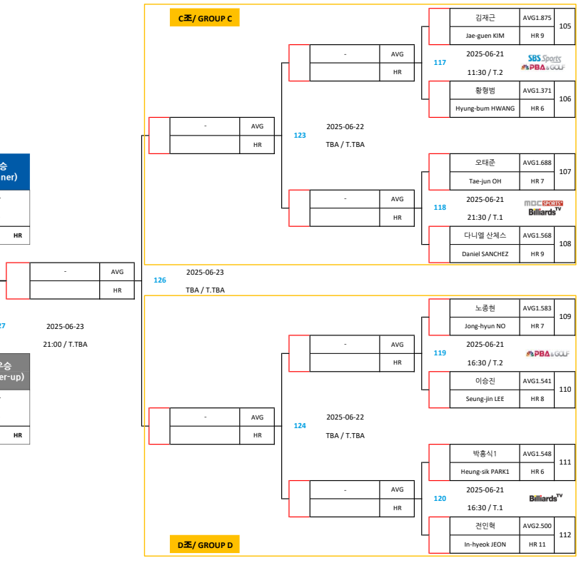 | 우리금융캐피탈 PBA 챔피언십 8강 대진표 16강 경기결과 (프로당구 2025-26) (1) | 2025.06.22 |