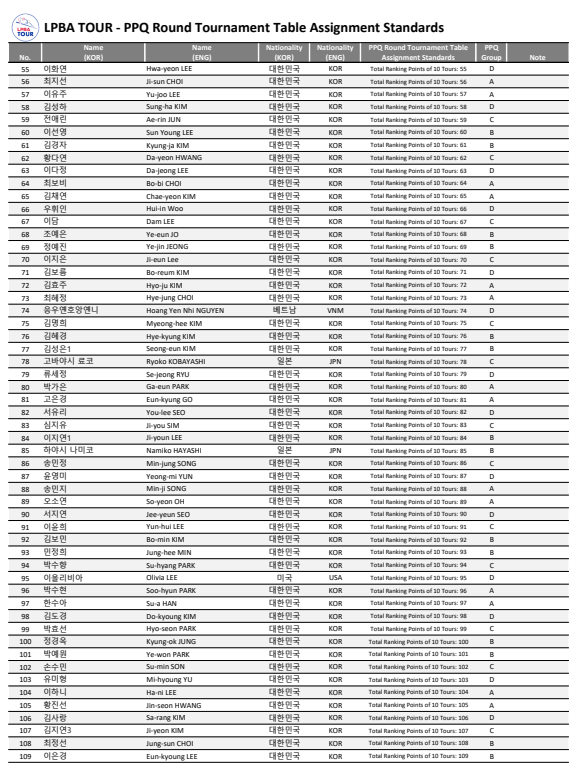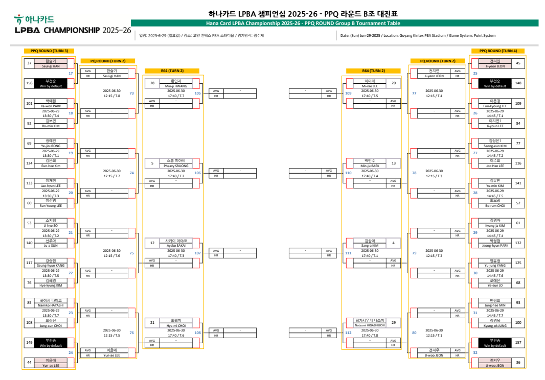 안녕하세요. 오늘은 프로당구 2025-26시즌 하나카드LPBA 챔피언십 PPQ 라운드 대진표를 정리했습니다. 대진표를 보기전에 먼저 PPQ 라운드 할당 기준부터 보고 가겠습니다.