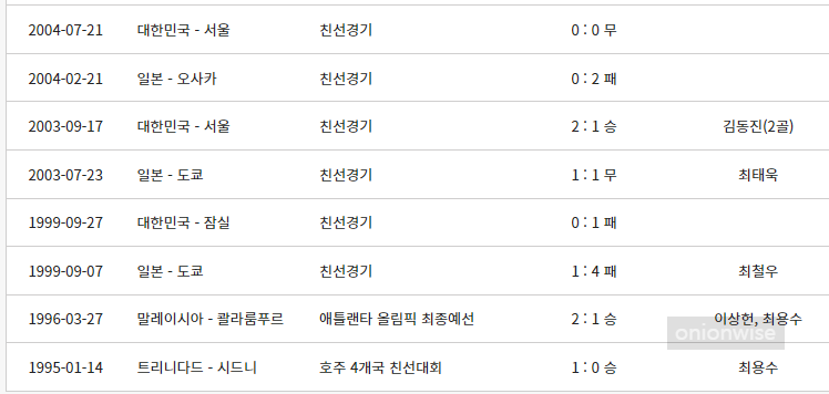 1 2003-04-16 대한민국 - 서울 친선경기 0 : 1 패