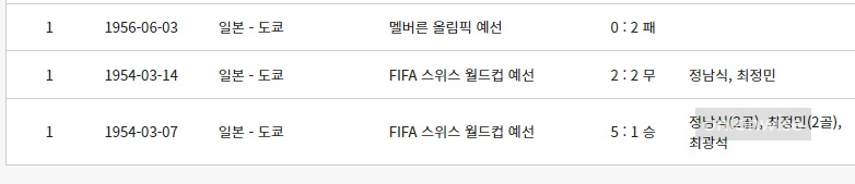 한국은 그 경기에서 한국 국가 대표팀은 골키퍼를 포함하여 전체 국가대표 축구선수로 출전한 선수의 수가 12명에 불과 했지만 5대1이라는 대승으로 한일전 첫번째 경기를 신고하였습니다. 정말 자랑스러운 대한민국 축구 국가대표팀 선수들이었습니다. 당시 골을 넣은 선수는 정남식 2골, 최정민 2골, 최광석 1골을 기록하였습니다.