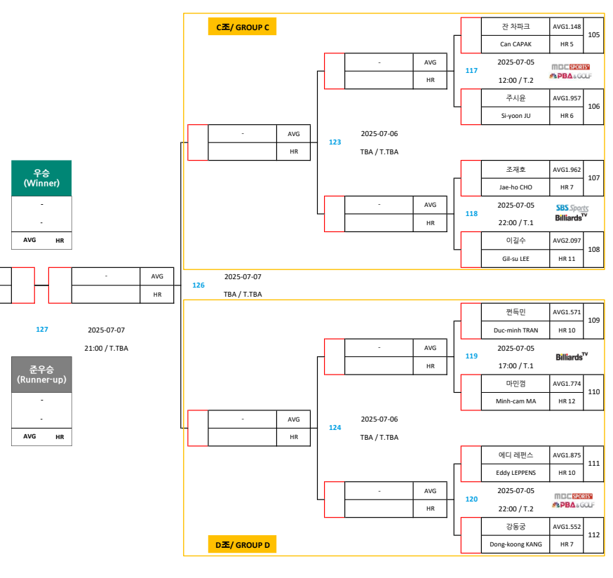 | 하나카드 PBA 챔피언십 64강 대진표와 128강 경기결과 (2025-26시즌) (0) | 2025.07.03 |