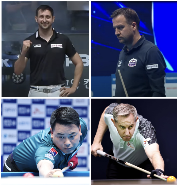 또 한편 4강 진출자는 PBA 챔피언 출신 3명과 도전자 체네트입니다. 국적은 한국, 튀르키예, 스페인, 벨기에로 오랫만에 국가별 대항전 형식입니다. 조재호가 결승에 올라 응원하는 재미가 있으면 더 좋겠습니다. 많은 응원 바랍니다.