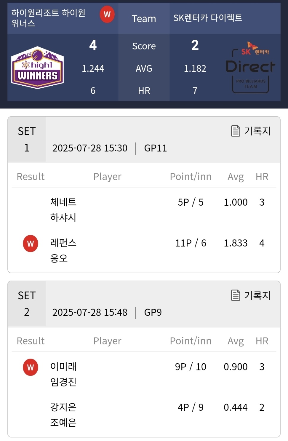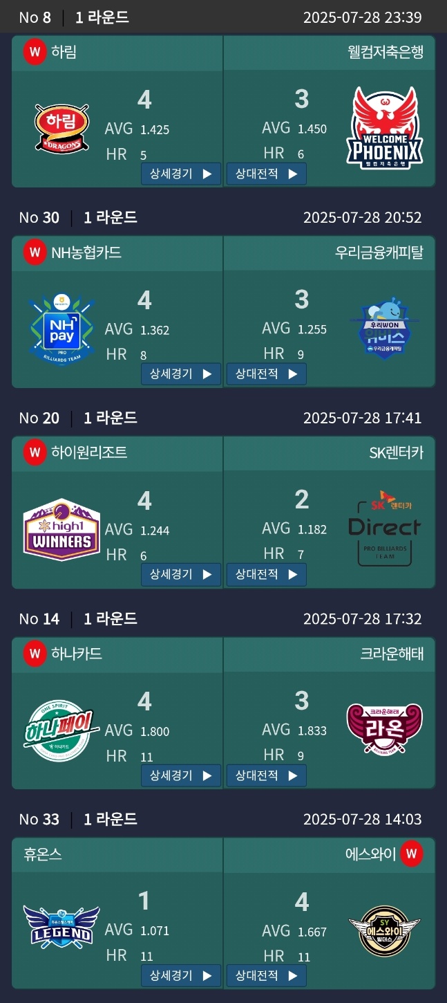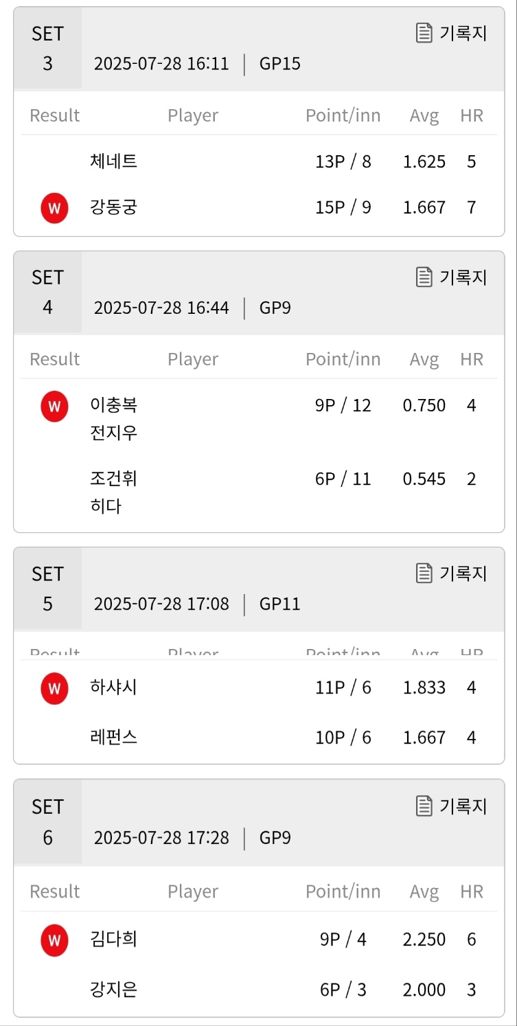 | 2025-26시즌 PBA 팀리그 1라운드 4일차 경기결과 - 1위 sk렌터카 당구팀 (2) | 2025.07.26 |