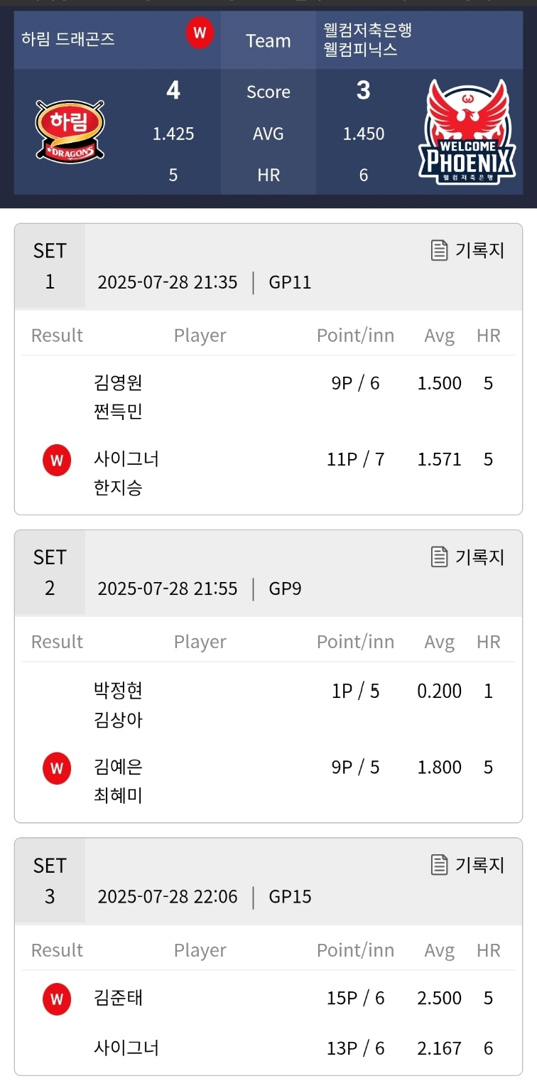 하림 드래곤즈 VS 웰컴저축은행 웰컴피닉스 당구팀