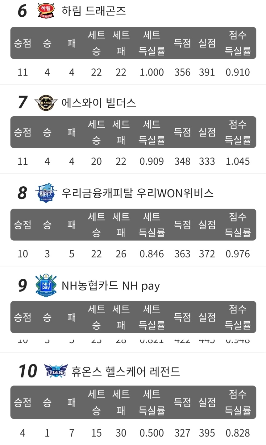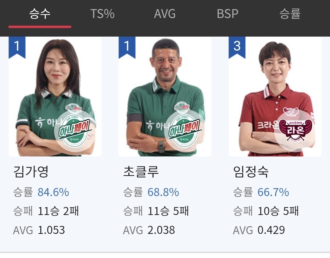| 2025-26시즌 PBA 팀리그 1라운드 경기결과 우승팀은 하나카드, MVP는 김가영으로 확정 (0) | 2025.07.30 |
