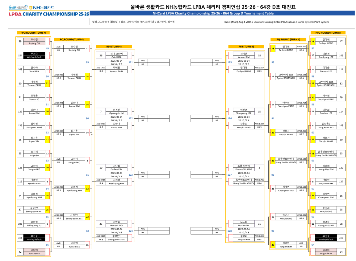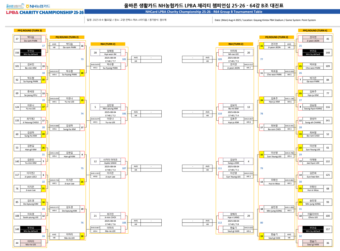 | NH농협카드 LPBA 채리티 챔피언십 25-26 - PPQ 라운드 대진표 (3) | 2025.08.02 |