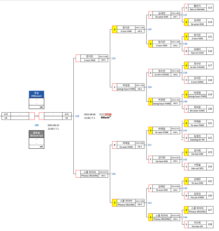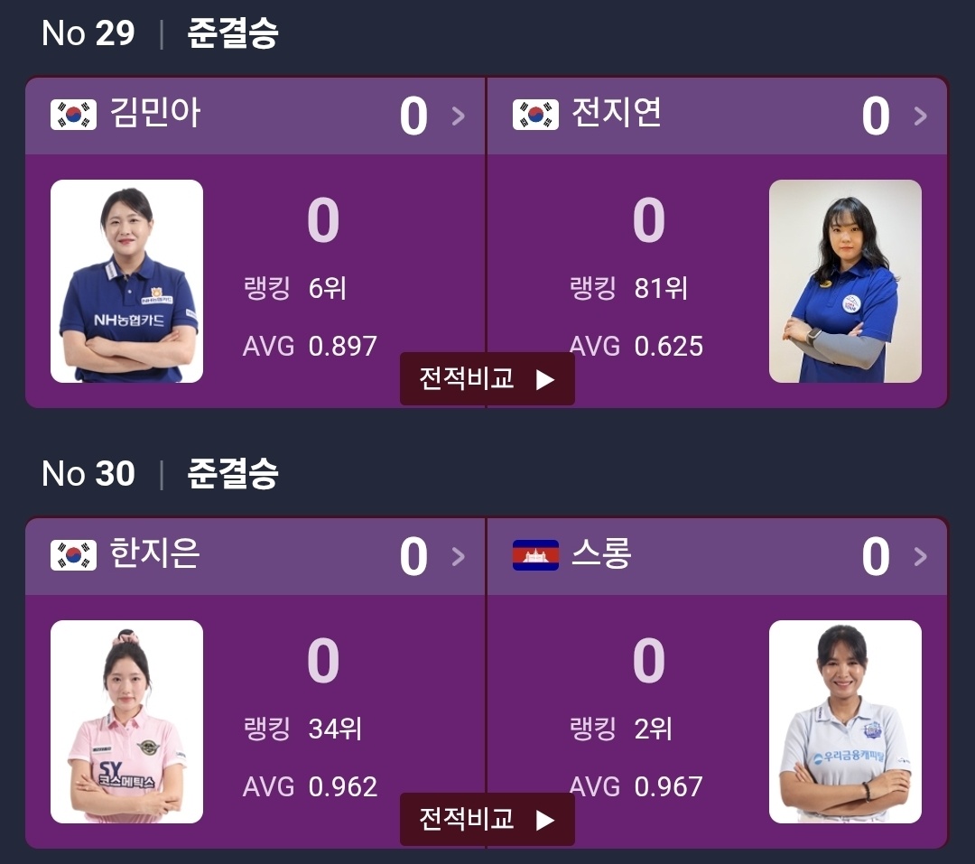 NH농협카드 LPBA 채리티 챔피언십 25-26 4강 대진표 - 스롱 한지은, 김민아 전지연