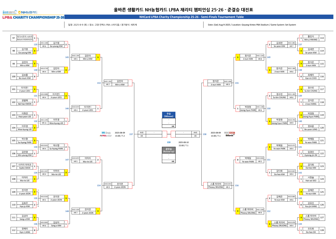 NH농협카드LPBA 채리티 챔피언십 25-26 4강 준결승 대진표 (1)  입니다.