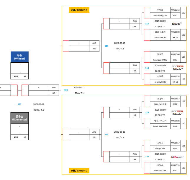NH농협카드 PBA 채리티 챔피언십 25-26 16강 조별 대진표 최종 자료입니다.