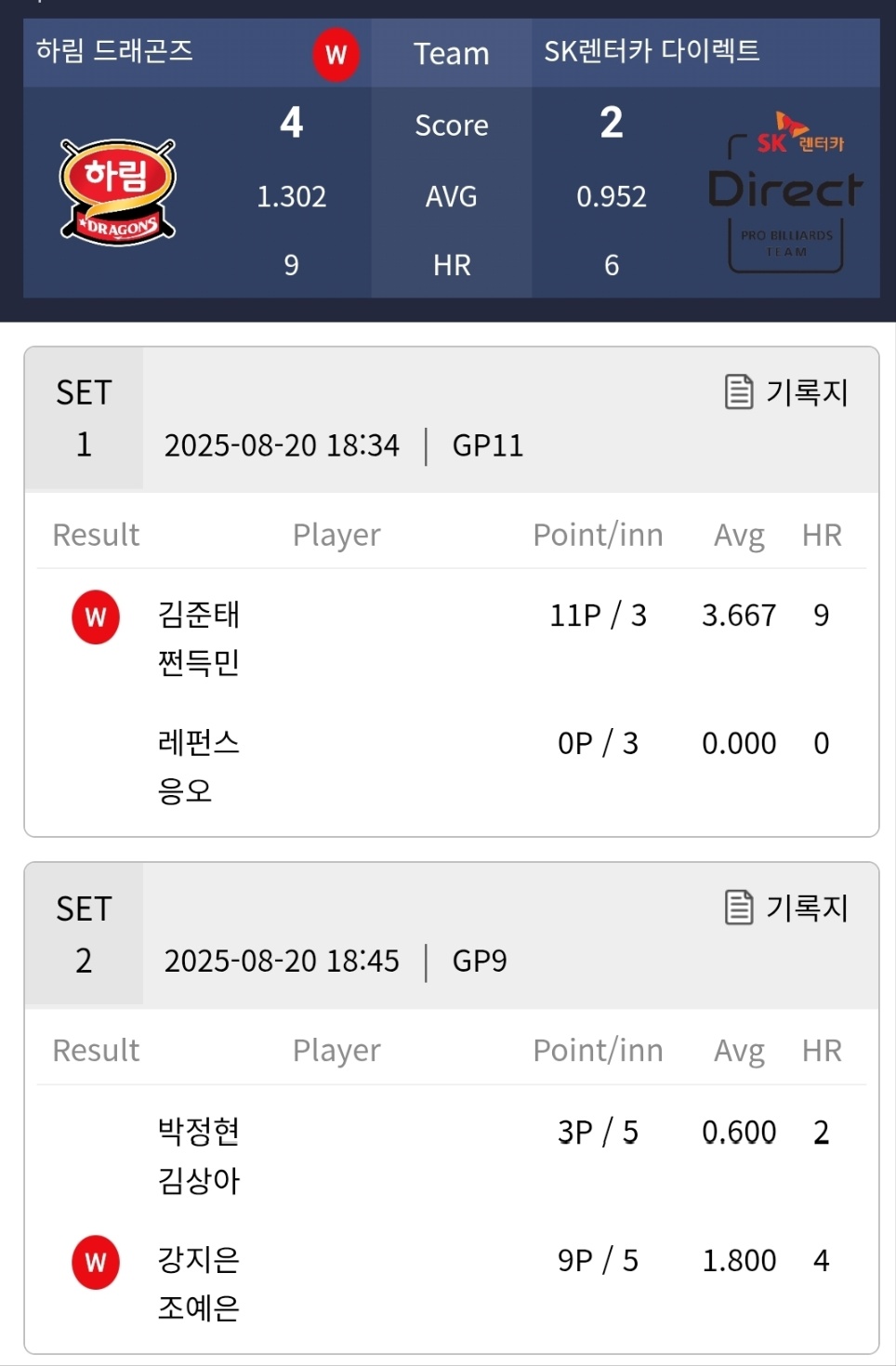 특히 오늘은  2025-26 시즌 PBA 팀리그 2라운드 4일차 경기결과 가운데 아래의 하림 당구팀의 첫 번째 승리 경기를 자세히 살펴보았습니다.