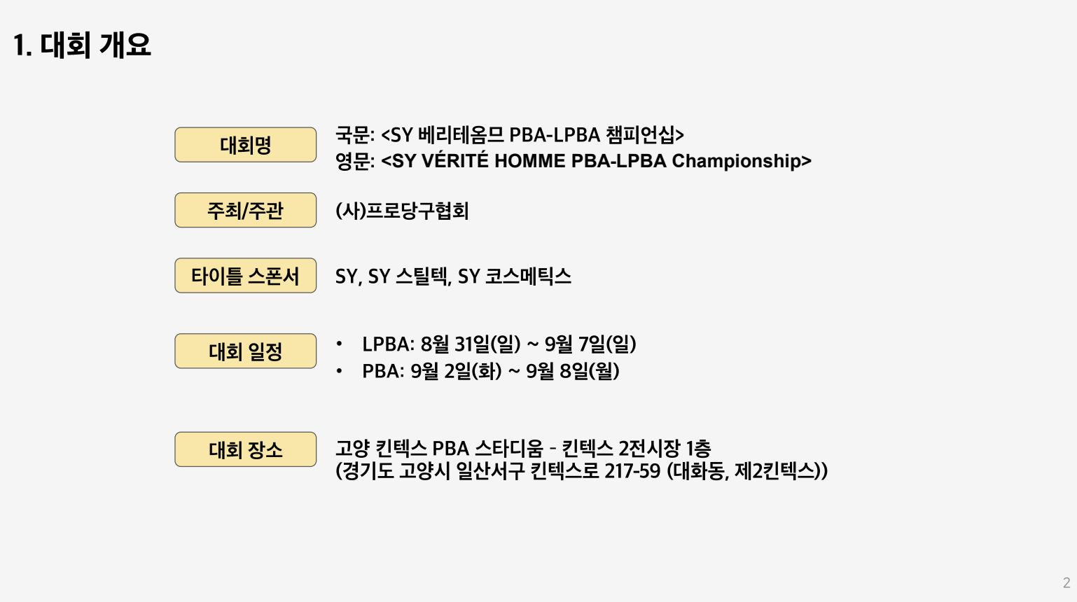 - 대회명: <SY 베리테옴므 PBA-LPBA 챔피언십>