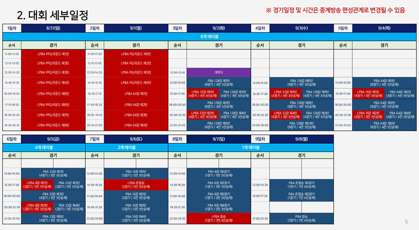 - PBA: 2025년 9월 2일(화) ~ 9월 8일(월)
