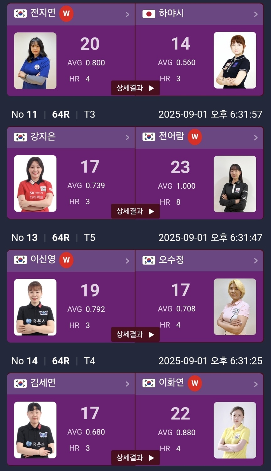 SY 베리테옴므 LPBA 챔피언십 64강 경기결과
