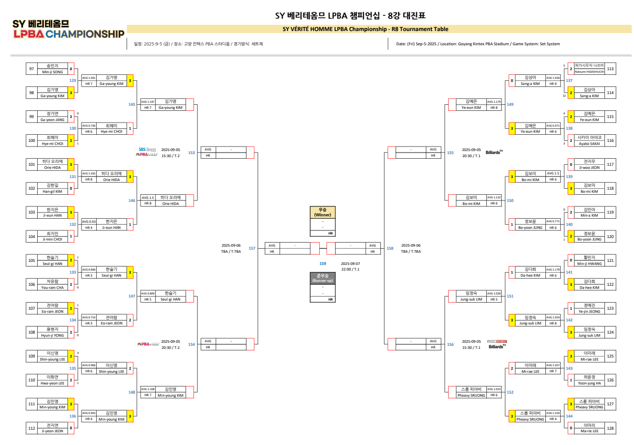■ SY 베리테옴므 LPBA 챔피언십 8강 대진표