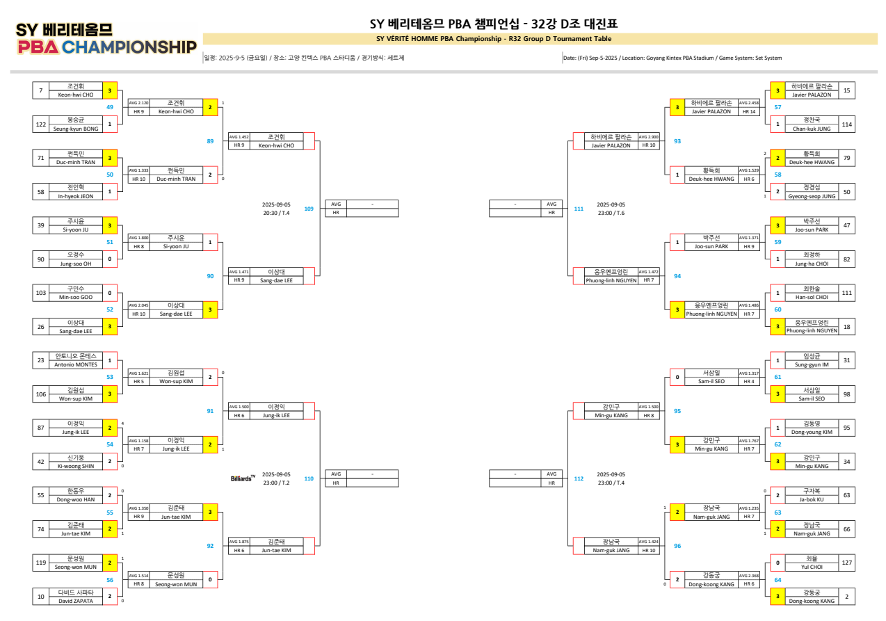 2. SY 베리테옴므 PBA 챔피언십 32강 대진표