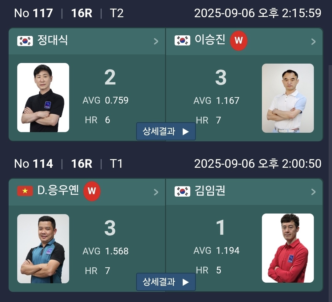 | SY 베리테옴므 PBA 챔피언십 16강 대진표 - 김현우 사이그너, 이충복 모리 (2025-26) (0) | 2025.09.06 |