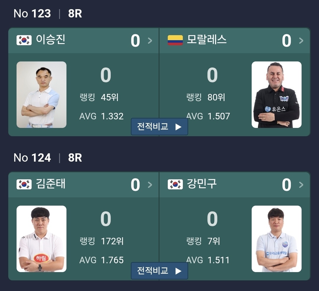 한편 8강에 올라온 선수들은 어느 당구팀 소속일까요? 매시즌 팀리그 멤버는 달라질 수 있습니다. 아직 팀리그 소속이 경험이 없는 선수도 8강 진출자 가운데 2명이나 보입니다. 누구일까요?