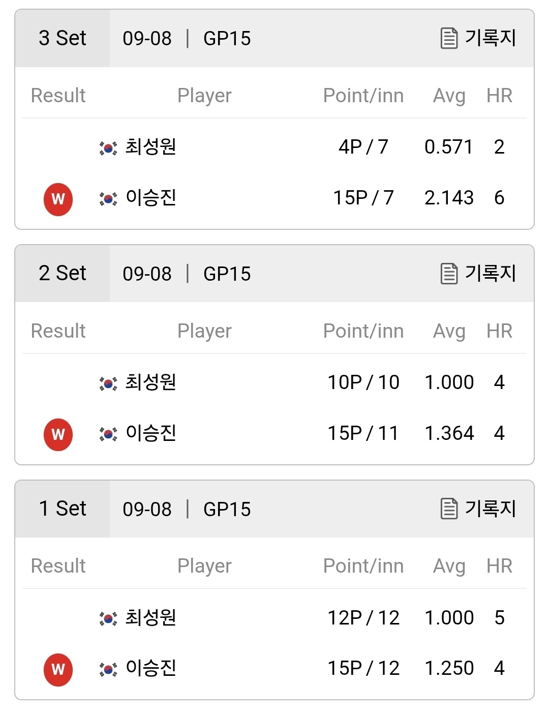 경기 시작전에는 젊은 시절 UMB 세계 당구연맹이 주관하는 대회에서 세계선수권 우승, 3쿠션남자 당구 세계 1위까지 올랐던 최성원 선수의 우세를 점치는 분들이 많았지만 뚜껑을 열어보니 오늘은 당구의 신이 이승진 선수의 손을 들어 주었습니다.