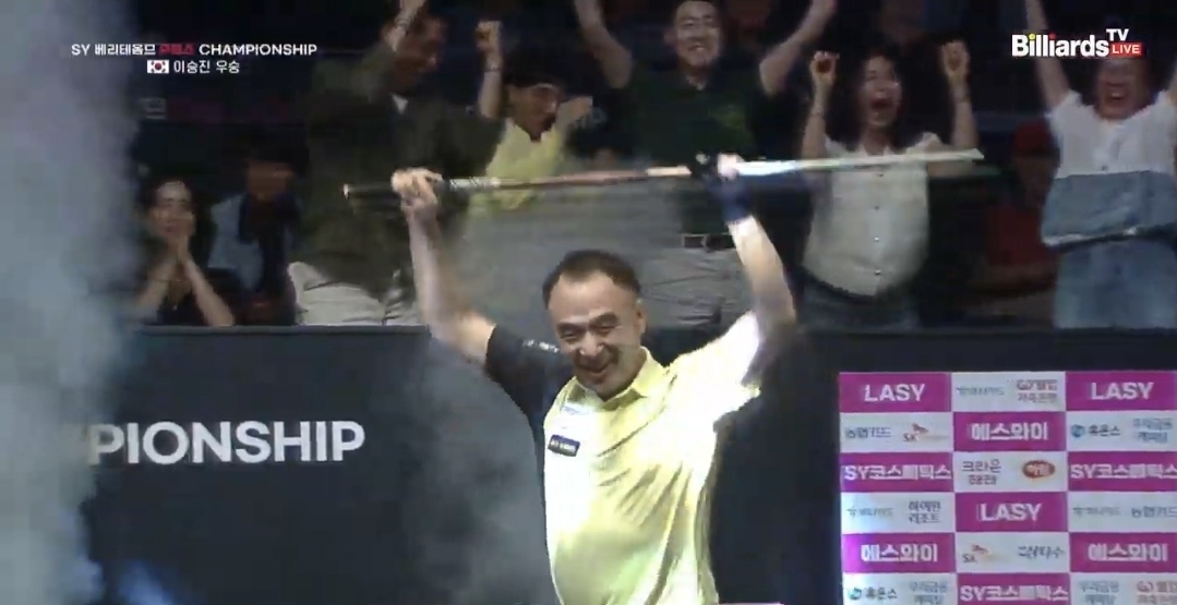 조금 전 끝난 프로당구 2025-26시즌, 4차 대회, SY 베리테옴므 PBA 챔피언십 결승 결과, 이승진 당구선수가 최성원 선수를 4대 2로 꺽고 우승을 차지했습니다. 이승진 선수는 1970년 출생으로 당구가 좋아 아마추어 연맹에서부터 당구 인생 40년을 보낸 50대 중년입니다.