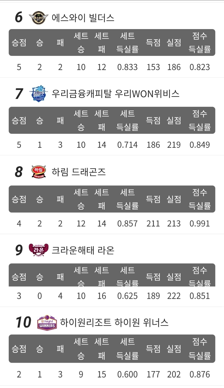 영봉패를 당한 당구팀은 세트 득실률마저 큰 손해를 보게됩니다. 하위로 밀릴 어려운 상황에 놓이게 되었습니다.