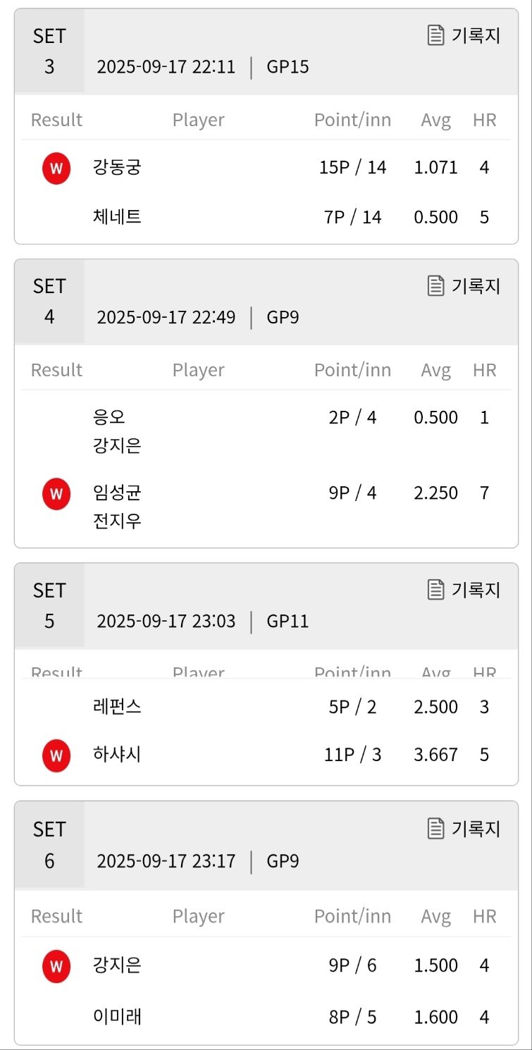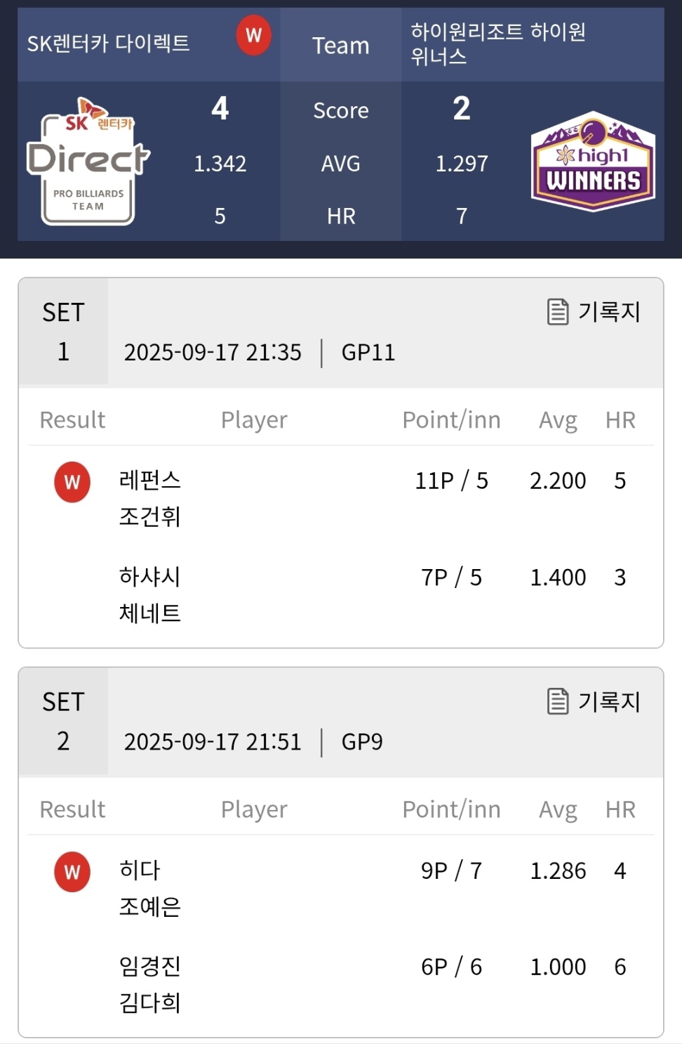 하지만 6세트에서 이미래가 매치포인트까지 먼저 도착했으나, 강지은에게 9:8로 역전패하면서 패매를 안았습니다. 그로고보니 하이원리조트 당구팀에는 PBA LPBA 챔피언 출신이 이미래 선수 1명뿐입니다. 체네트, 하샤시, 김다희, 임경진 등 유망 선수들로 구성했으나 전체적인 경기력이 부족합니다.